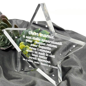 Fabriquez dès aujourd'hui une magnifique étoile en plexiglas à offrir en cadeau. Entièrement personnalisable avec vos propres noms.