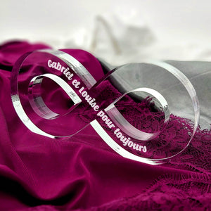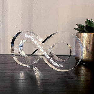 Offrez dès aujourd'hui un magnifique symbole Infini en plexiglas. Entièrement personnalisable avec votre propre texte.