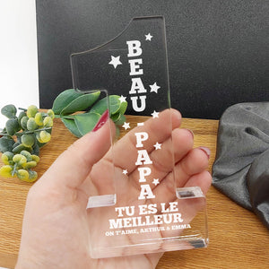 Offrez dès aujourd'hui un magnifique cadeau en plexiglas pour la remise du premier prix. Gravure au laser avec les noms des enfants.