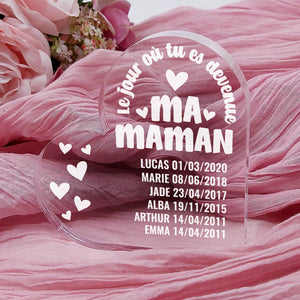 Le jour où tu es devenue ma maman - cœur en plexiglas