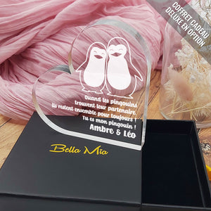 Offrez aujourd'hui un magnifique cœur en plexiglas avec un message personnalisé. Gravé au laser avec vos propres noms et d'une épaisseur de 1 cm.