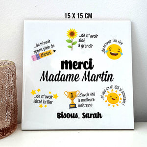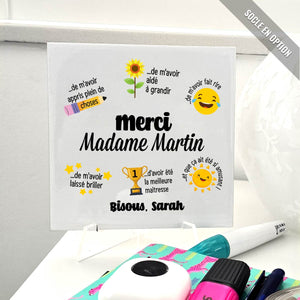 Avec ce cadeau de fin d'année, la maîtresse saura à quel point votre enfant a apprécié cette année à ses côtés. Le cadeau parfait pour dire merci avec le cœur !